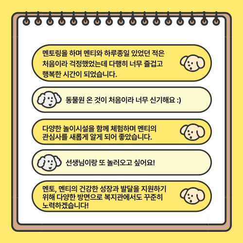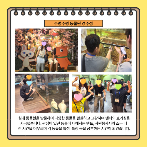 멘토, 멘티들의 건강한 성장과 발전을 지원하기 위해 다양한 방면에서 노력하고 소통하도록 최선을 다하겠습니다 :)