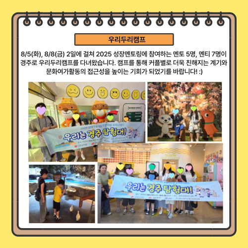 멘토, 멘티의 여름방학을 맞이하여 경북 경주 일대로 당일치기 "우리두리캠프"를 다녀왔습니다.