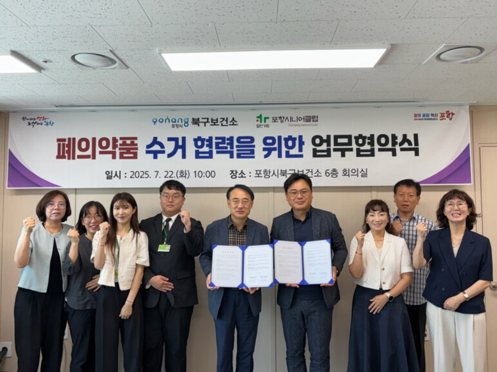 포항시니어클럽 「포항북구보건소, 폐의약품 수거 협약 체결」 포항시니어클럽 노인복지사업 0 513 2025.09.05 17:27 7월 22일 포항시니어클럽은 포항시북구보건소와 폐의약품 수거 협약을 체결했습니다. 노인일자리사업을 통해 안전한 폐의약품 수거·처리와 시민 인식 개선에 힘쓰겠습니다.