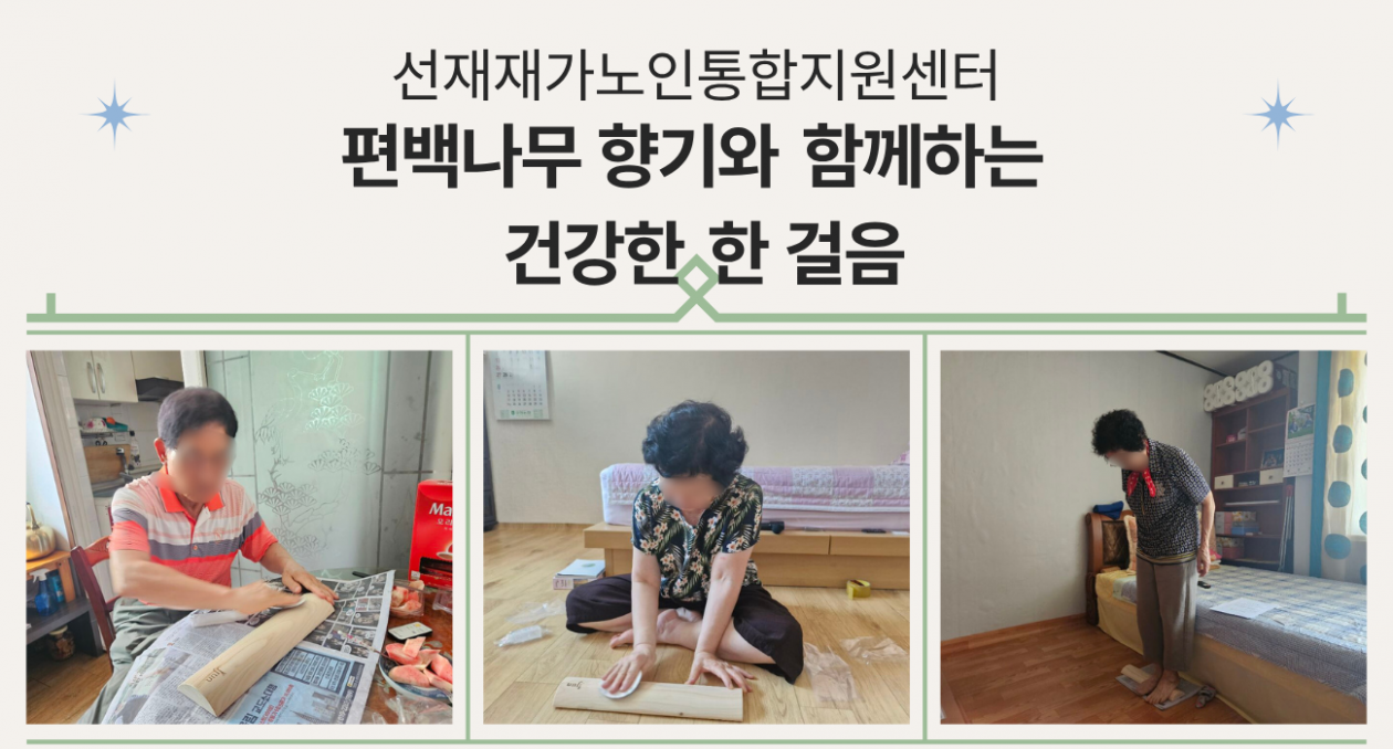 어르신들의 건강한 일상과 정서적 안정, 그리고 활기찬 여가시간을 위해 노인맞춤돌봄서비스에서는 "편백 발지압기 만들기 체험 프로그램"을 진행하였습니다.