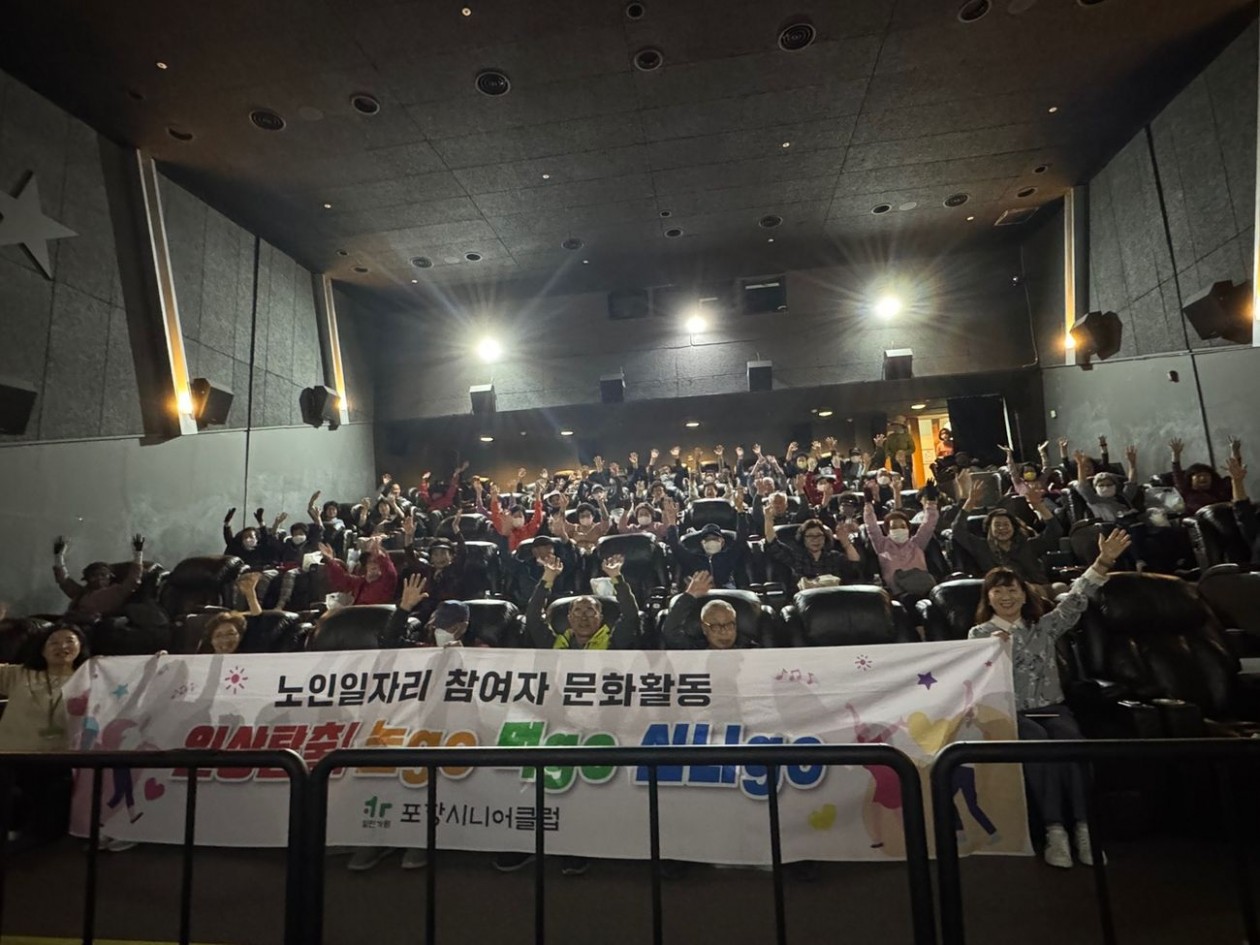 포항시니어클럽 「스쿨존지킴이사업 문화활동 영화관람 실시」 포항시니어클럽 노인복지사업 0 583 2025.07.10 11:04 5월 22일과 23일, 북포항CGV에서 스쿨존지킴이 참여자를 대상으로 영화 관람 문화활동을 진행하였습니다.265명의 참여자들이 동료들과 함께 영화 ‘대가족’을 관람하고 간식을 나눈 뒤 안전하게 귀가하였습니다.앞으로도 참여자들의 직무 스트레스 해소를 위해 최선을 다하겠습니다.