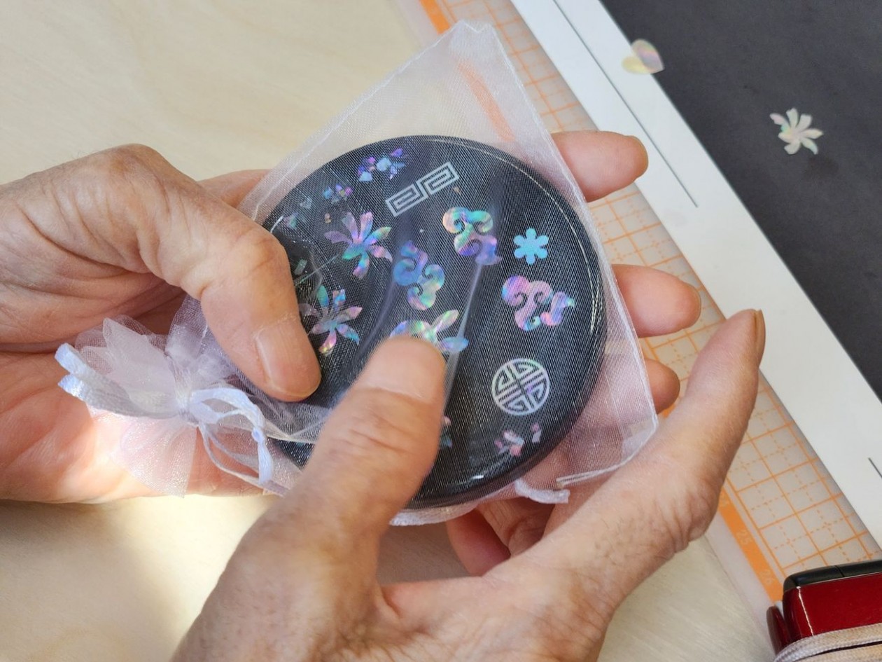 자개거울 공방체험 정애원 노인복지사업 0 596 2025.06.30 16:44 {이미지:0}자개거울 공방체험조심스럽게 자개 조각을 수 놓고 보니 영롱하고 아름다운 작품이 완성되었습니다. 어려울 것 같다고 주저하던 어르신도 선생님의 도움을 받아 어르신만의 멋진 자개거울을 만드셨습니다.