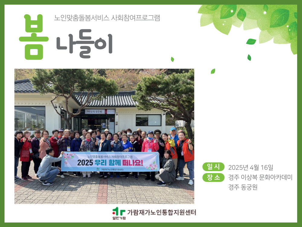 봄바람 타고 경주로 떠난 하루 - 어르신들과 함께한 추억 나들이