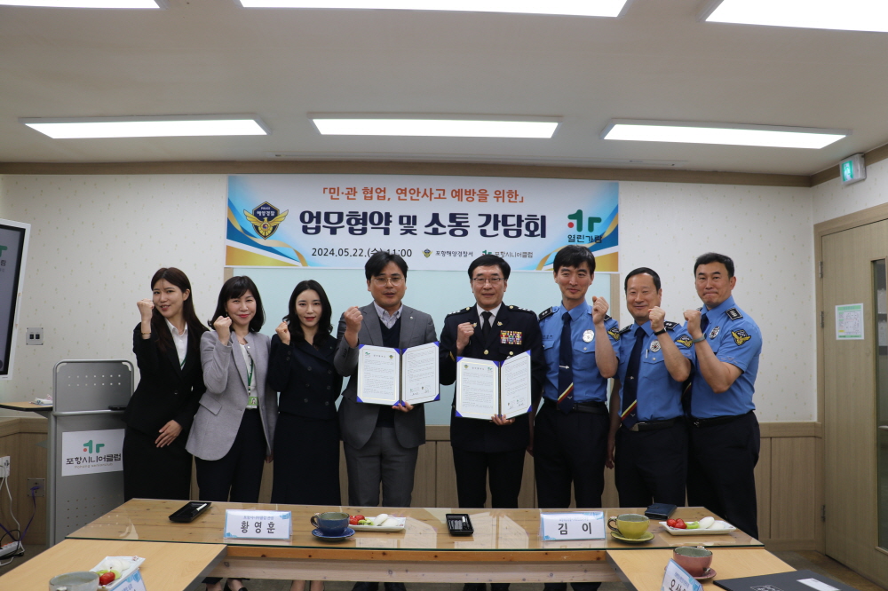 포항시니어클럽, 포항해양경찰서와 업무협약 체결 포항시니어클럽 노인복지사업 0 1234 2024.07.05 11:16 포항시니어클럽, 포항해양경찰서와 업무협약 체결, 5월 22일 포항시니어클럽과 포항해양경찰서(서장 김지한)는 연안사고 예방을 위한 업무협약 및 소통 간담회를 개최하였습니다. 이날 자리는 연안안전 문화 확산, 해양 환경 보호, 구명조끼 착용 홍보 협력, 연안 위험구역 예방활동 강화, 안전 교육 및 긴급 대응 협력 등 지역사회의 안전과 복지증진을 위한 논의하고 민과 관이 소통하고 힘을 모으는 뜻깊은 시간이 되었습니다.