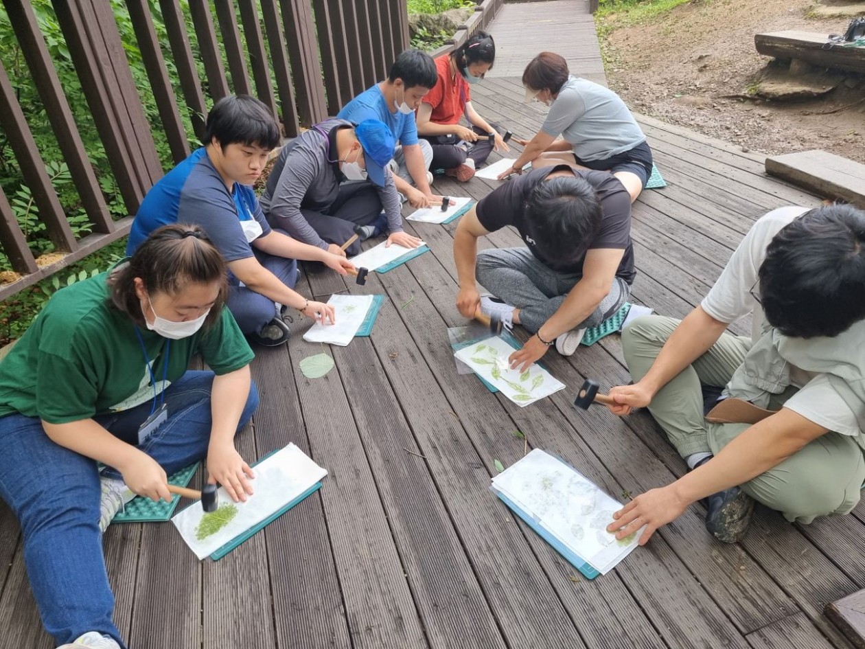 1일차는 오감빙고, 숲속탐험 프로그램을 통해 숲과 관련된 다양한 활동을 하였고, 조별활동 프로그램을 실시하였고 2일차 활동에서는 숲에 물들다 프로그램을 진행하였고, 이용자들은 본인들의 방식으로 나뭇잎을 손수건에 물을 들여 세상에 하나뿐인 손수건을 만드는 모습을 보였습니다.