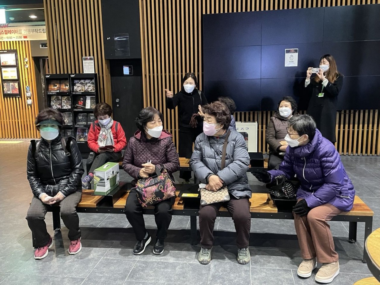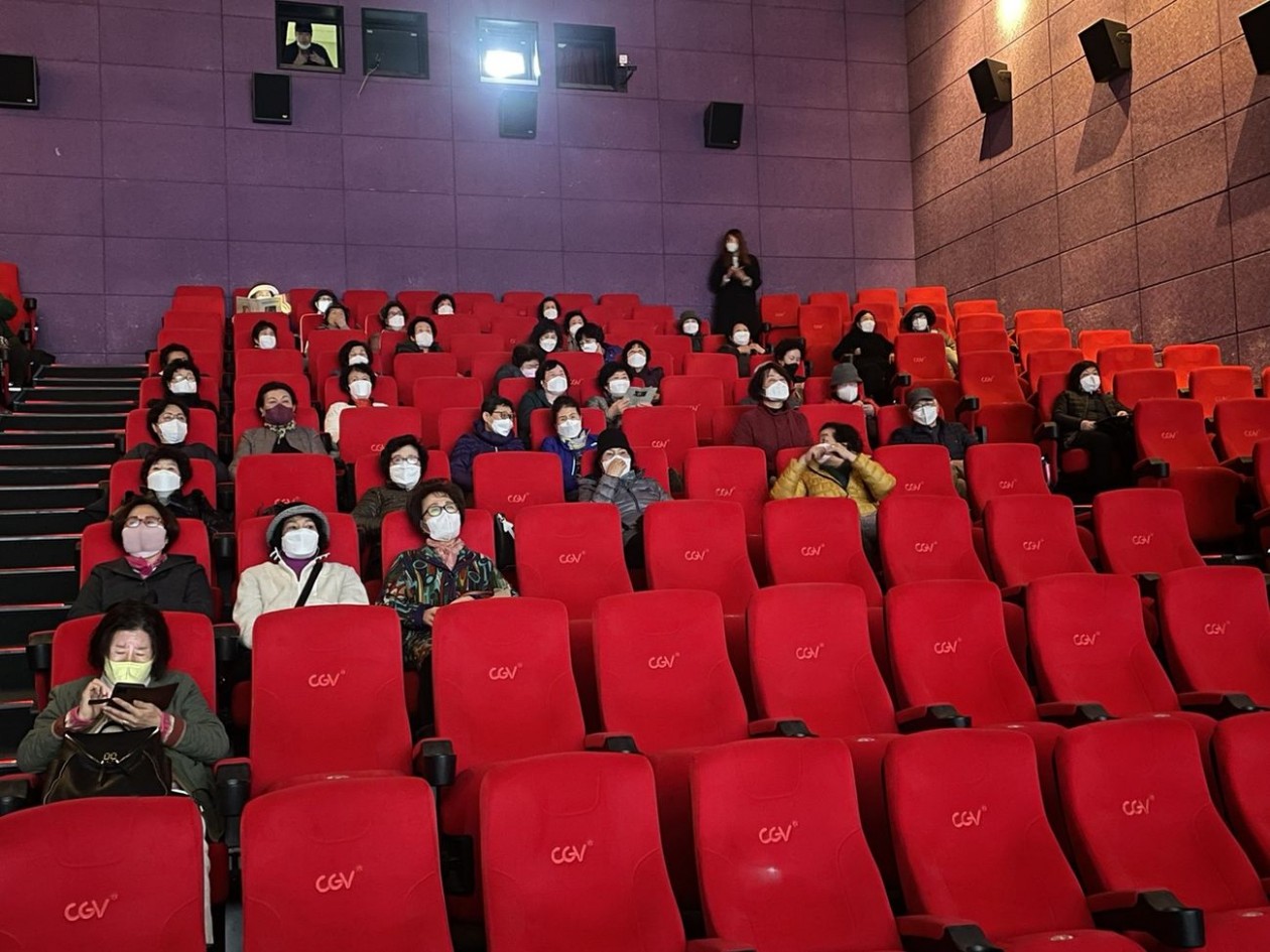 포항시니어클럽 스마일급식도우미 문화활동 실시 (영화 개봉전 무료 시사회) 포항시니어클럽 노인복지사업 0 3324 2022.03.15 14:59 포항시니어클럽 스마일급식도우미 문화활동 실시 포항cgv에서 포항시니어클럽 스마일급식도우미를 무료 영화시사회에 초대를 해주셨습니다.영화관에 입장하기전 출석체크 및 체온체크를 실시하고 영화 관람을 실시하였습니다.지속되는 코로나19 상황에 지쳐있는 어르신들이 오랜만에 문화활동인 영화관람을 기대하시는 모습이 보이시나요?영화관람으로 참여어르신들의 화합과 스트레스 해소를 하실수 있어서 좋은 시간이였습니다.어르신들이 문화활동이 하실수 있도록 도움을 주신 포항CGV 관계자분들께 감사인사를 드립니다.