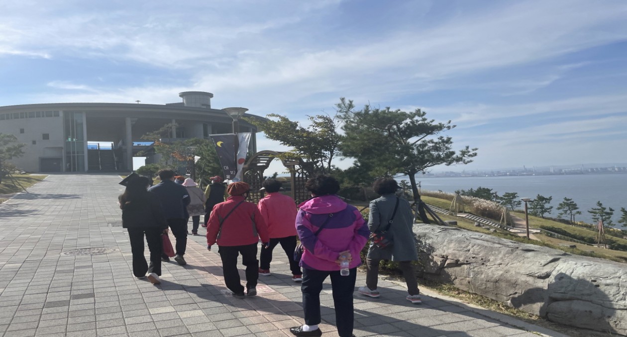 든든하게 식사 후 어르신들과 함께 연오랑세오녀 테마공원으로 이동했습니다. 선선하게 부는 바람이 여름 때와는 달리 차갑긴 하지만 또래 친구들과 신나게 놀고 맛있는 식사도 하니 그저 좋기만 합니다.