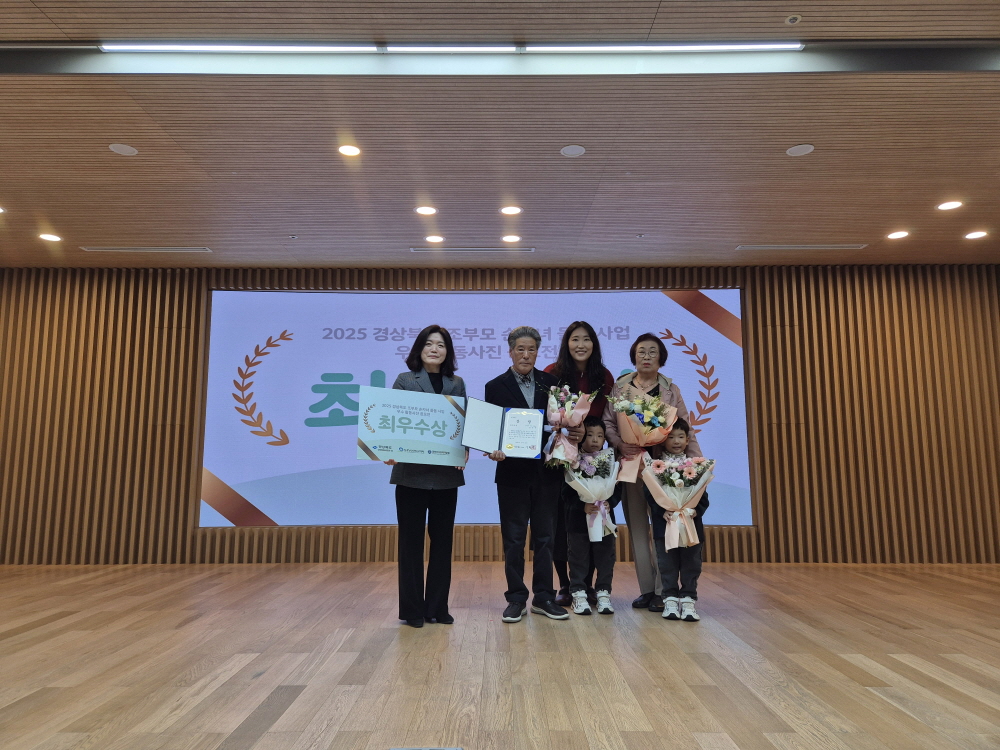 포항시니어클럽 조손돌봄 참여자 성과공유회 최우수상 수상 포항시니어클럽 노인복지사업 0 261 01.02 15:42 포항시니어클럽 선도모델 조손돌봄 시범사업에 참여한 참여자들이 사업을 성공적으로 종료하였습니다.지난 11월 25일, 사업의 성과를 공유하는 성과공유회에 참여하여 그동안의 활동과 의미를 함께 나누는 뜻깊은 시간을 가졌습니다.특히, 사진공모전에 참여한 참여자 중 2명이 최우수상과 입선이라는 값진 성과를 거두는 영광을 안았습니다.손자와 할머니·할아버지가 함께한 일상의 행복한 모습을 담은 사진이 수상의 기쁨을 더했습니다.이번 성과는 조손가정의 따뜻한 돌봄과 세대 간 정서적 교류의 가치를 다시 한 번 확인하는 계기가 되었습니다.