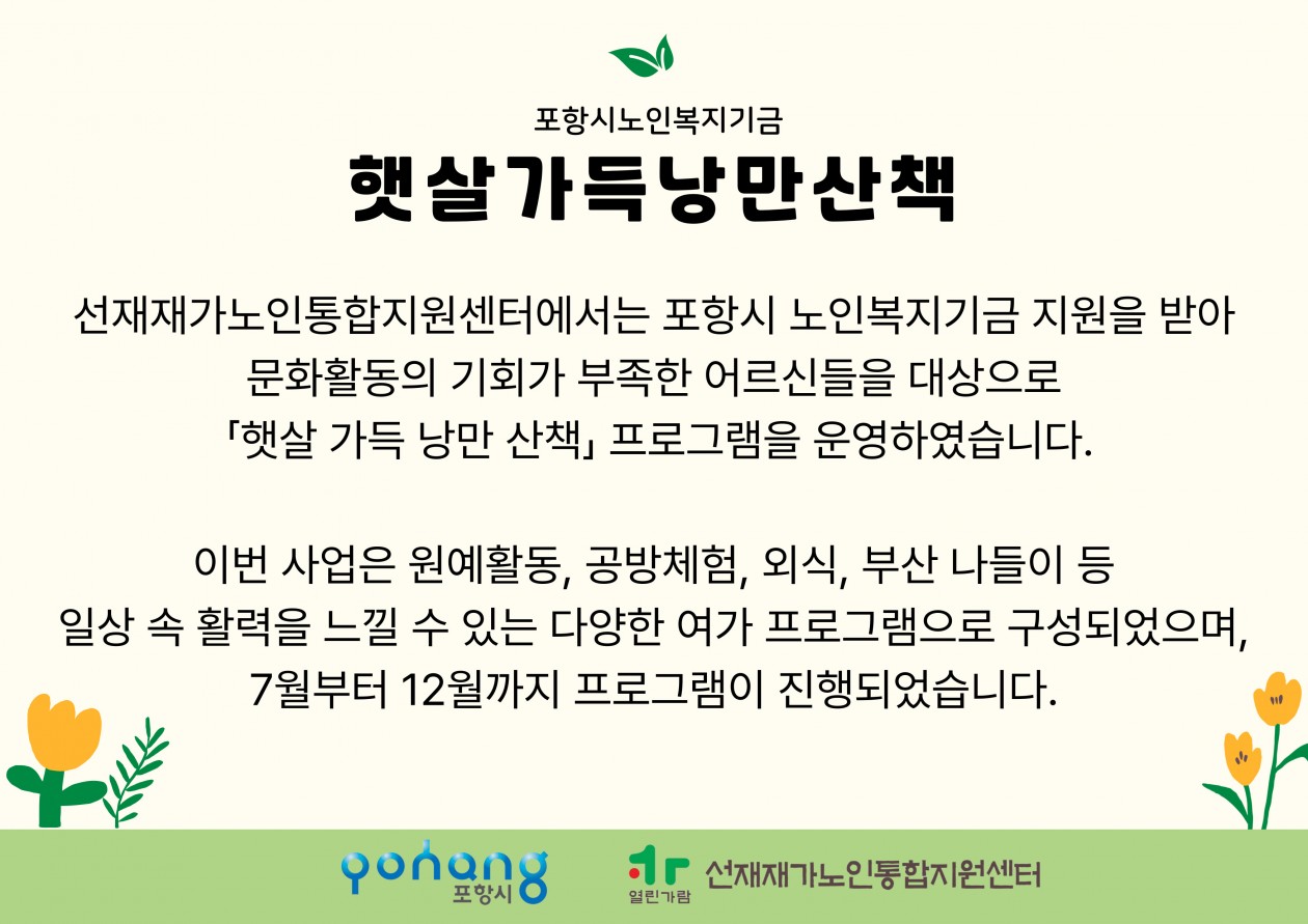 선재재가노인통합지원센터 포항시 노인복지기금사업 「햇살가득 낭만산책」 사업 실시