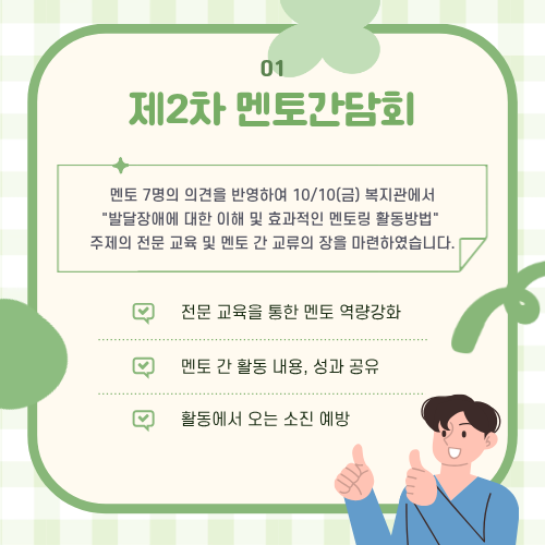지난 10/10(금) 복지관 3층 함께실에서 제2차 멘토간담회가 진행되었습니다.