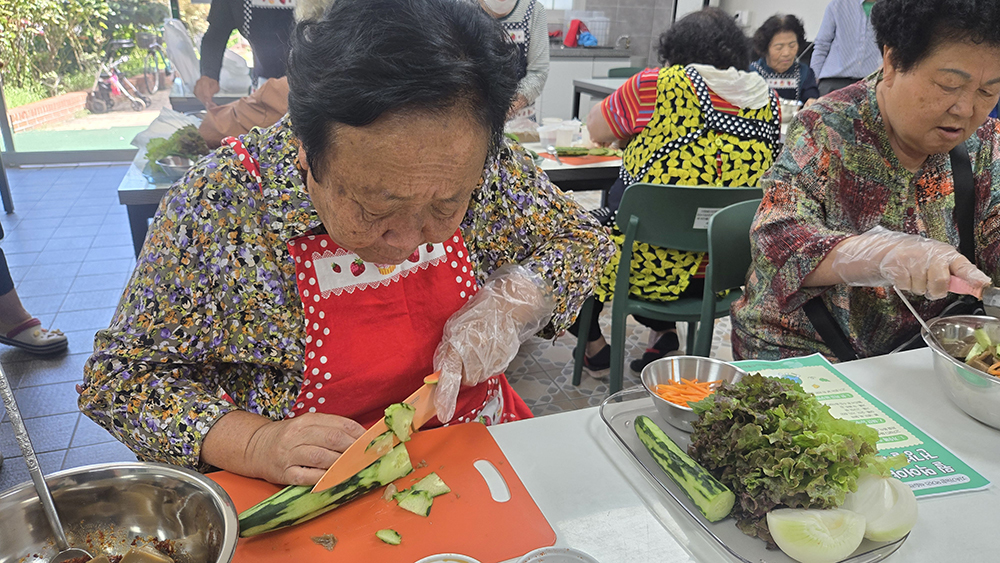 가람재가노인통합지원센터 '저탄소 요리교실' 실시 가람재가노인통합지원센터 노인복지사업 0 523 2025.09.16 15:50 가람재가노인통합지원센터 지속가능한 먹거리 식습관을 위한 '저탄소 요리교실'우양재단의 후원으로 어르신들과 함께 지속 가능한 먹거리 식습관을 위한 '저탄소 요리교실'을 총 4회에 걸쳐 진행하였습니다.불을 사용하지 않고, 지역사회 먹거리와 자투리 음식을 활용하여 요리하였습니다.기후변화와 먹거리에 대해 함께 이야기 나누며 나와 지구, 모두를 위한 뜻 깊은 시간이 되었습니다.